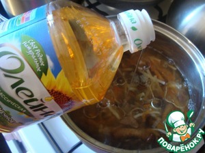 Отправляем в кастрюлю и варим до готовности. Наливаем 2 ст л подсолнечного масла.