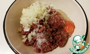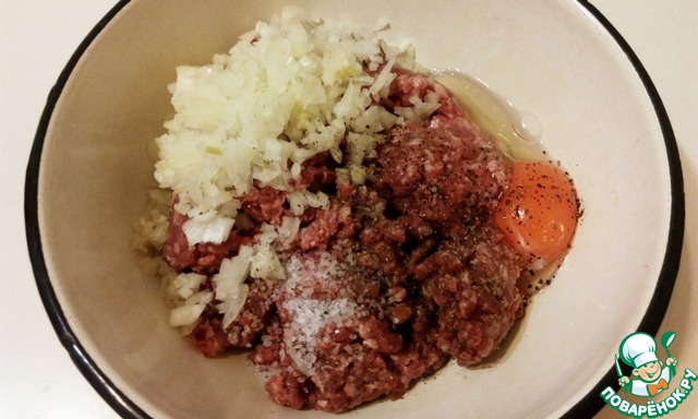 Теперь займемся не постной составляющей. У меня фарш уже готовый, в него добавить мелко нарезанный лук, яйцо, соль и перец по вкусу.