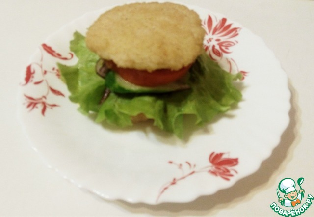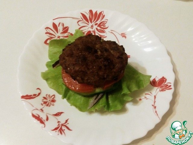 Для не постного кладем на овощи котлету и также закрываем лепешкой.