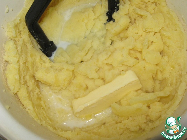 Почистить, нарезать и отварить картофель в подсоленной воде. Слить воду, добавить сливочное масло и молоко, тщательно растолочь. Пюре готово.