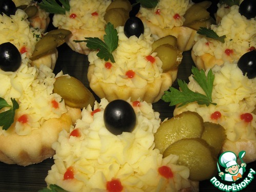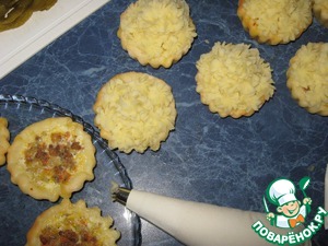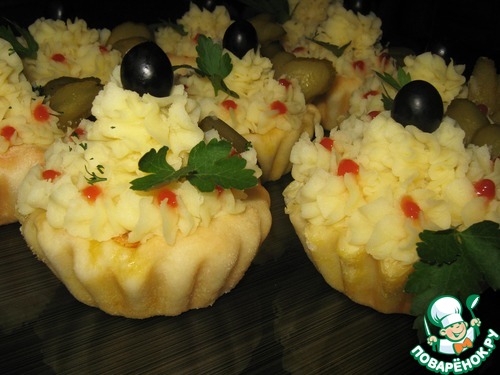 Картофельное пюре переложить в кулинарный мешок и заполнить корзиночки.