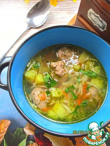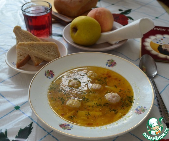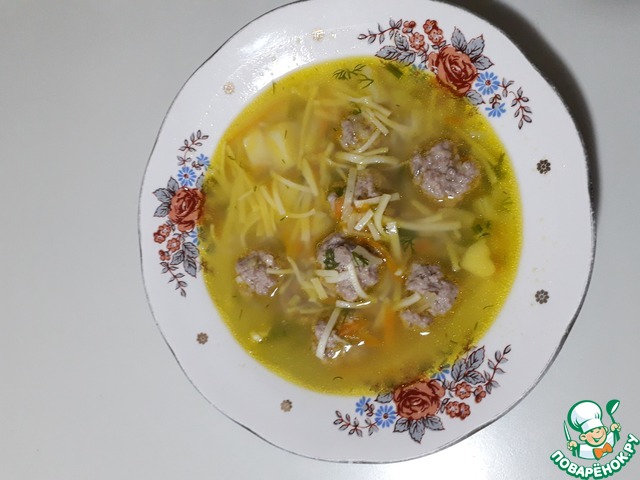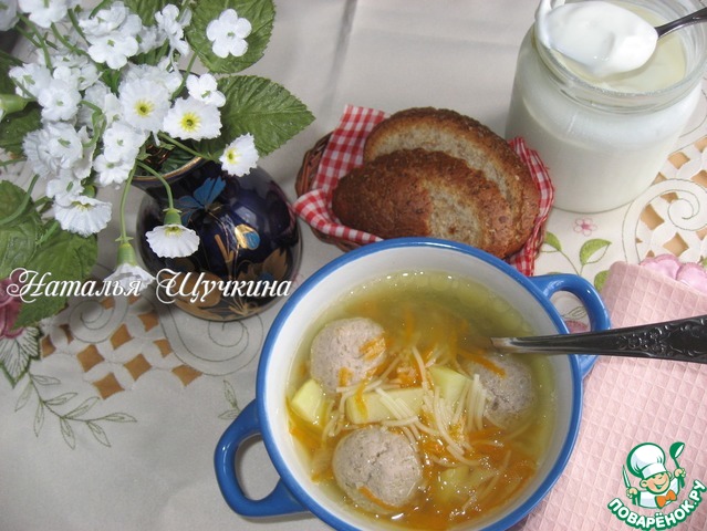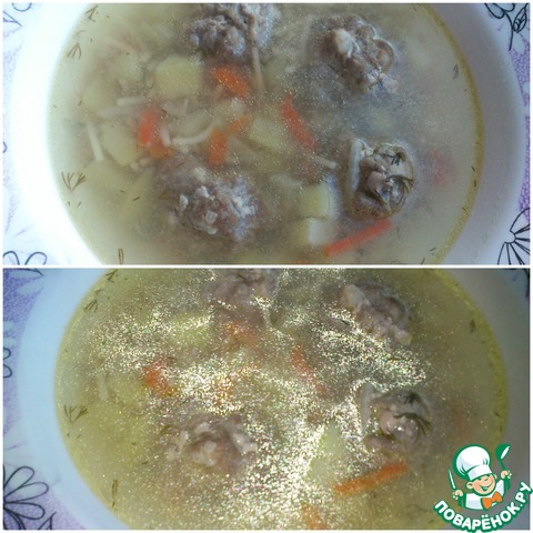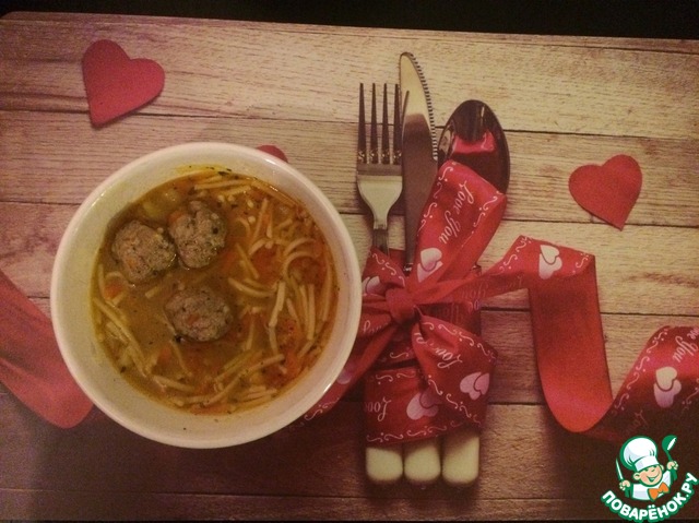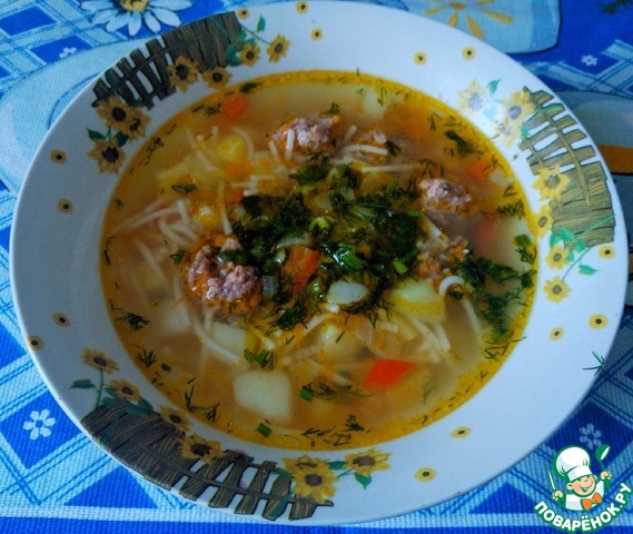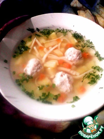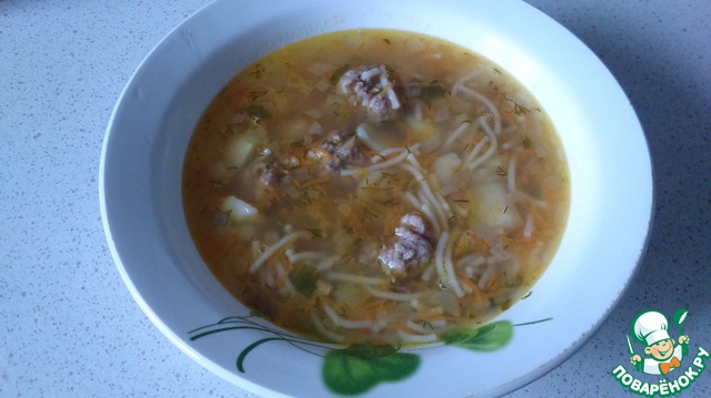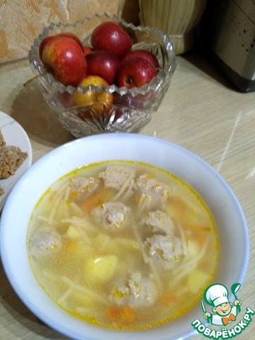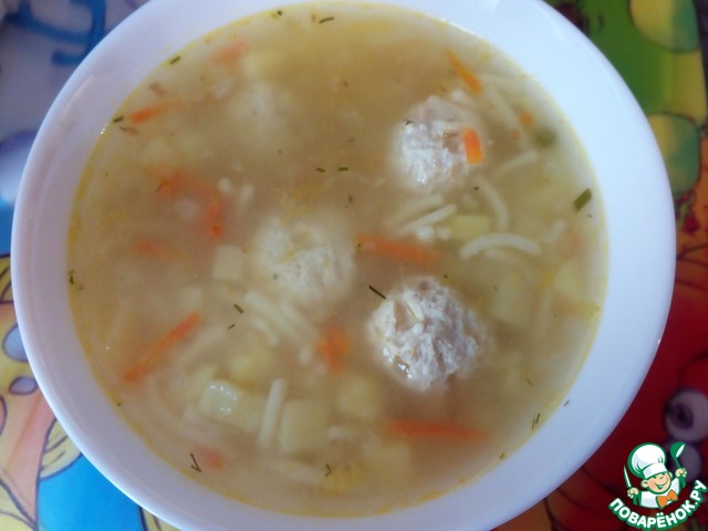Рецепт «Суп с фрикадельками и лапшой "Паутинка"»: