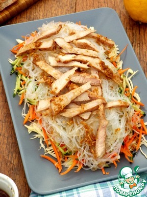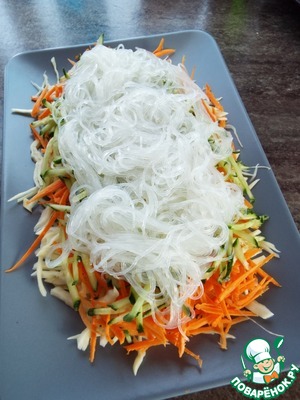 Рецепт «Овощной салат с фунчозой и корейкой-гриль»: