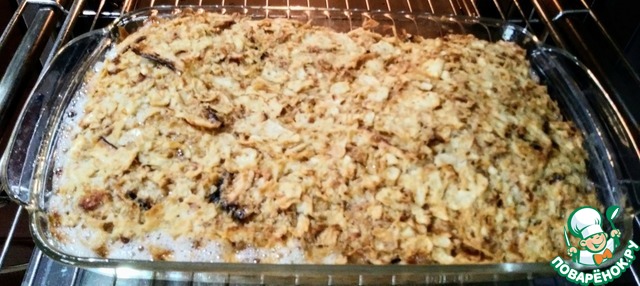 У меня казан. На дно 2 ст. ложки постного масла и выкладываю эту массу, немного придавливать ложкой. Масла много не надо - может потечь через края. Духовка180 на среднюю полку в течение 1ч.15 Это моя духовка, смотрите по своей. Проверять лучинкой, чтобы была сухая