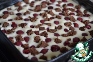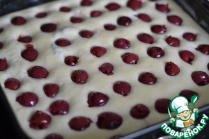 От оставшегося теста отрываем маленькие кусочки и выкладываем между вишнями.