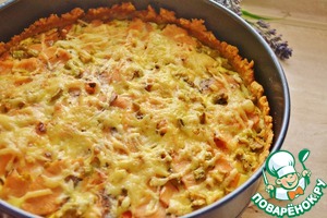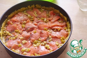 Тесто песочное ,но не рассыпается в руках,хотя приятно хрустит. Для меня такое свойство песочного теста ,с добавлением сыра ,стало открытием,обязательно возьму это на заметку. Перец был разноцветным,я его порубила очень мелким кубиком и он не мешал(как в замечании предыидущего приготовившего),а даже наоборот-добавил интересного привкуса. Рыба у меня была "с миру по-нитке": форель,лосось и маслянная рыба. Сыр тоже,даже было несколько кусочков копчёного,вкусу это не помешало. Я слои выложила плотновато, и поэтому заливка не хотела проникать во внутрь,так я их ножом немножко пошебуршила. Фото до разреза выставлю в форуме(тоже красивое)