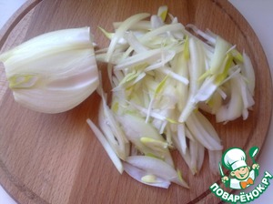 Очистить и нарезать лук крупной соломкой.