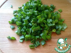Мелко нарезать зеленый лук. Оставить 1 ч. л. нарезанного зеленого лука для оформления готового блюда.