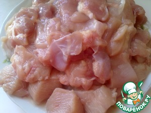 Куриное мясо нарезать на небольшие кусочки.