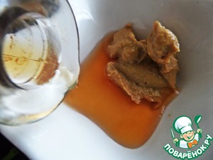 Для заправки смешать горчицу с домашним яблочным уксусом.