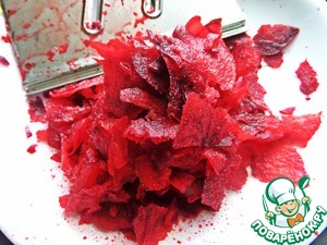 Свёклу чистим, моем и строгаем на такой тёрке-шинковке. Соломка здесь не уместна, оставим её для варёной свёклы.