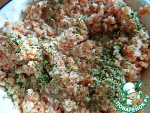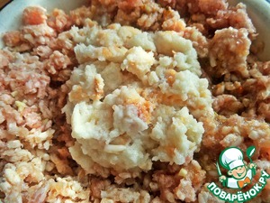 Зашпариваем кипятком сухую булку и потом вмешиваем в фарш.