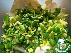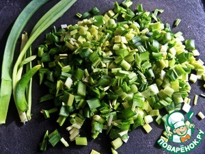 Нарезать любую зелень. У меня проросшие на окне лук и чеснок.