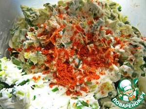 Для начинки я использовала крем-сыр латвийского производства, в нём 82% творога, слегка солёный, по вкусу похож на "филадельфию".