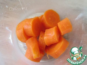 Морковь отварить до готовности, очистить, крупно нарезать, поместить в чашу блендера.
