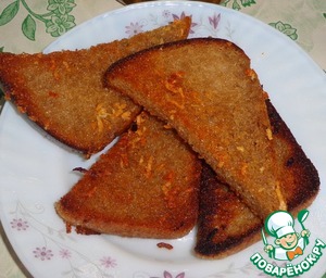 Вылить масло с чесноком и имбирем в сковороду и обжарить хлеб.