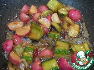 Добавляем овощи и так же на сильном огне прожариваем 2-3 минуты.