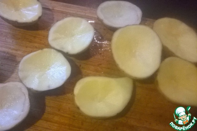 Картофель помыть и разрезать пополам