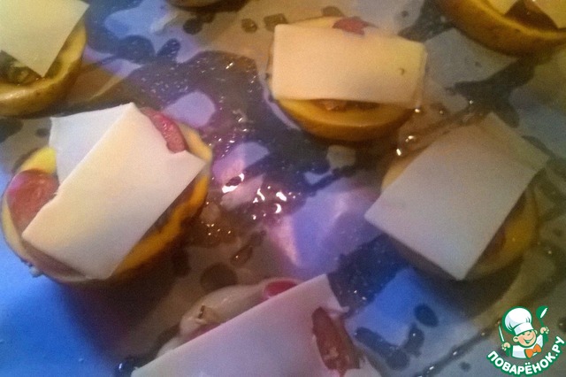 Выложить на картофельные половинки -