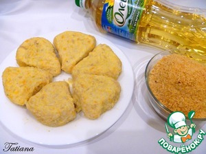 Влажными руками сформируйте небольшие котлетки, обваляйте котлетки в панировочных сухарях, обжарьте с двух сторон на подсолнечном масле до румяной корочки. Общее время жарки~ 10-12 минут.