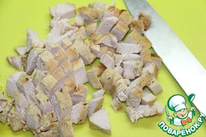 • Грудку немного остудить и порезать кубиками