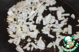 • Разогреть 1 ст. л. оливкового масла, обжарить мелкорубленый репчатый лук, не допуская зажаривания