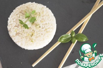 • Залить рис водой из расчета 1 часть риса, 2,5 части воды. Довести до кипения, убавить огонь и варить при слабом кипении и при закрытой крышке до полного впитывания жидкости, к этому времени зерна риса полностью раскроются. Затем откинуть на дуршлаг, сохранять теплым.