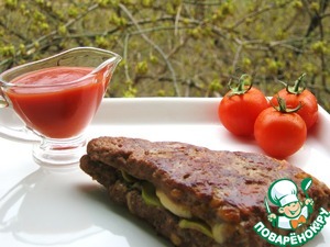 Из всех ингредиентов вымесить фарш. Посолить и поперчить по вкусу. Разделить на 2 равные части. На лист пергамента выложить одну часть фарша, придать ей форму прямоугольника, толщина 1 - 1,5 см.