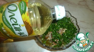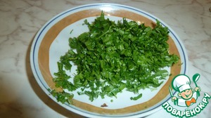 • Измельчила зелень (у меня петрушка, но с кинзой или укропом тоже вкусно). Чеснок мелко нарезала.