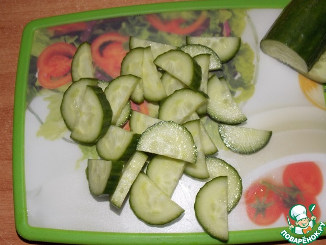 Огурец порезать.