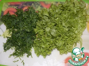 Салат и укроп измельчить.