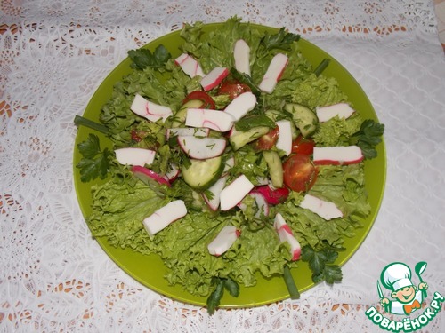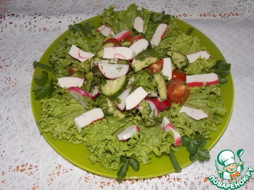 Лёгкий, нежный и быстрый салатик. Дорогие поварята прошу на дегустацию.