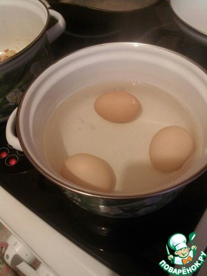 Чистим яйца, отделяем желтки от белка. Сначала нарезаем белок.