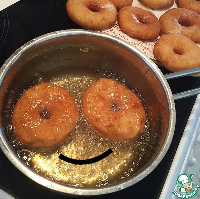 Когда пончики подойдут, обжарить их в масле до золотистости.
