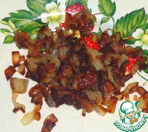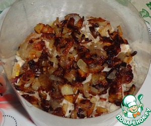 Порезанный лук обжарить на подсолнечном масле до румяного цвета.