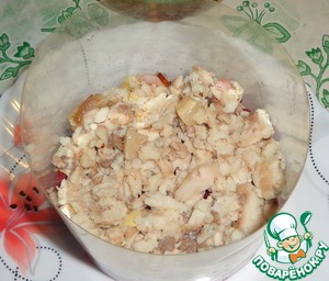 Отварное рыбное филе измельчить.