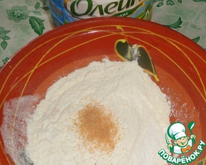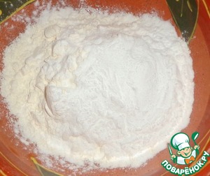 Смешать муку, крахмал, разрыхлитель теста и соль.