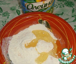 Добавить подсолнечное масло и воду. Хорошо перемешать.