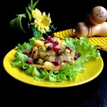 Фантастически вкусный салат, сытный, питательный и гармоничный. Просто пальчики оближешь! А еще очень прост и быстр в приготовлении!