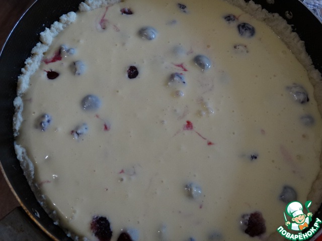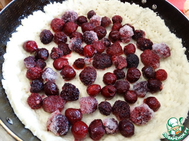 Достать форму с тестом, распределить по нему ягоды в один слой. |