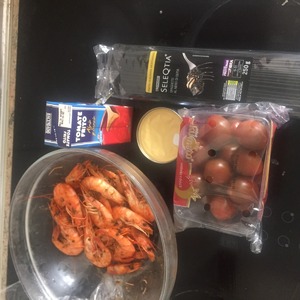 Готовим сразу все ингредиенты. Креветки заранее обжаренные.