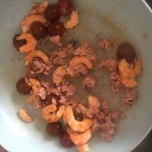 Добавляем тунец. Обжариваем еще минуты 2.