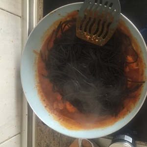 Тем временем варим черные спагетти.
