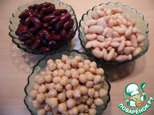 Из фасоли и нута слить жидкость.