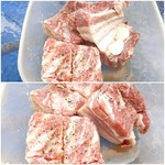 2. Разматываем пищевую плёнку и делаем подушечку из солевой смеси, на неё кладём грудинку и хорошо натираем оставшейся смесью. Заматываем в плёнку и убираем, где она нам не помешает на сутки при комнатной температуре.