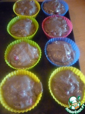 Разложить по формочкам на 2/3 и выпекать при 190С около 25 мин.