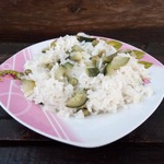 Если придерживаться правил, то это никакой не плов, а рис с овощами, приготовленный по технологии плова. Думаю, что похожее блюдо готовят почти все хозяйки Ароматный, в зелёных тонах, как всё за окошком скоро будет. Он хорош в качестве самостоятельного блюда и в качестве гарнира. Это постное блюдо подойдёт и для диетического питания Если честно, то я планировала выставить рецепт на другой конкурс, но пришёл сын, оценил взглядом содержимое холодильника и со словами "Не пропадать же добру!" поставил вариться оставшиеся после приготовления пиццы сосиски. "А почему бы и нет?"- подумала я. Сосиски мы едим крайне редко. Выставляю рецепт на ваш суд