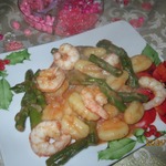 Заправить соусом с креветками и спаржей и сразу же подавать!