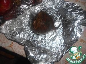 Овощи (свеклу, морковь, картофель вымыть) - завернуть каждый по отдельности в фольгу и запекать в горячей духовке около 50 минут.