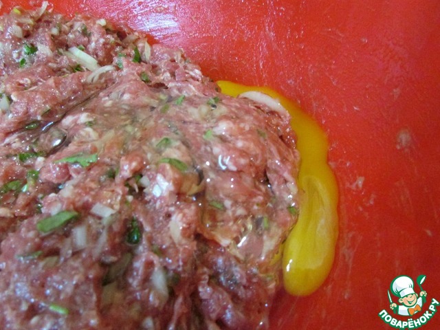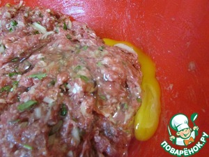 Вбить яйцо и все хорошо перемешать. Фарш попробовать на соль, если нужно подсолить.